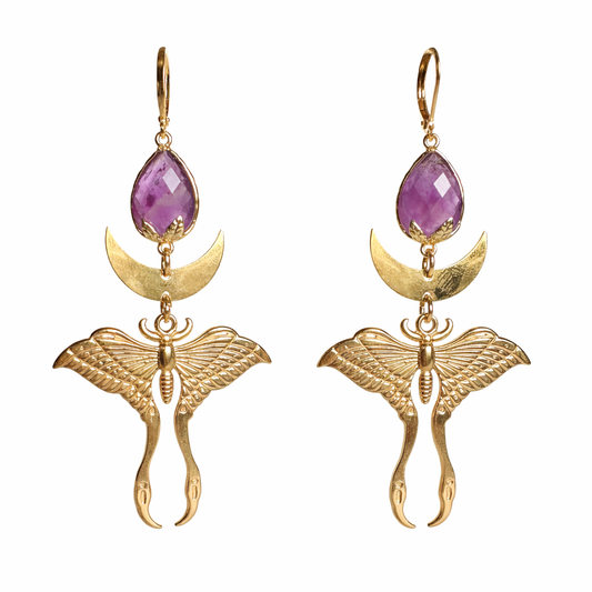 Ohrringe | Edelstahl Celestia Moth – Amethyst