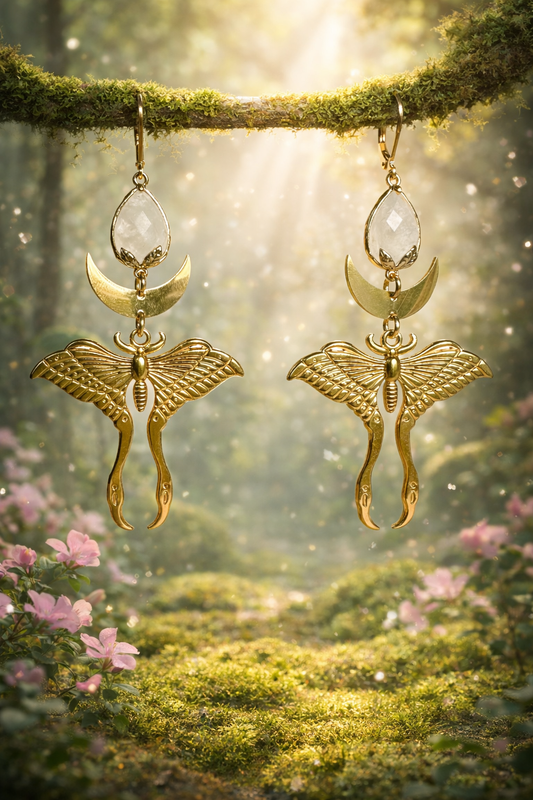 Ohrringe | Edelstahl Moth of the Moon Bergkristall