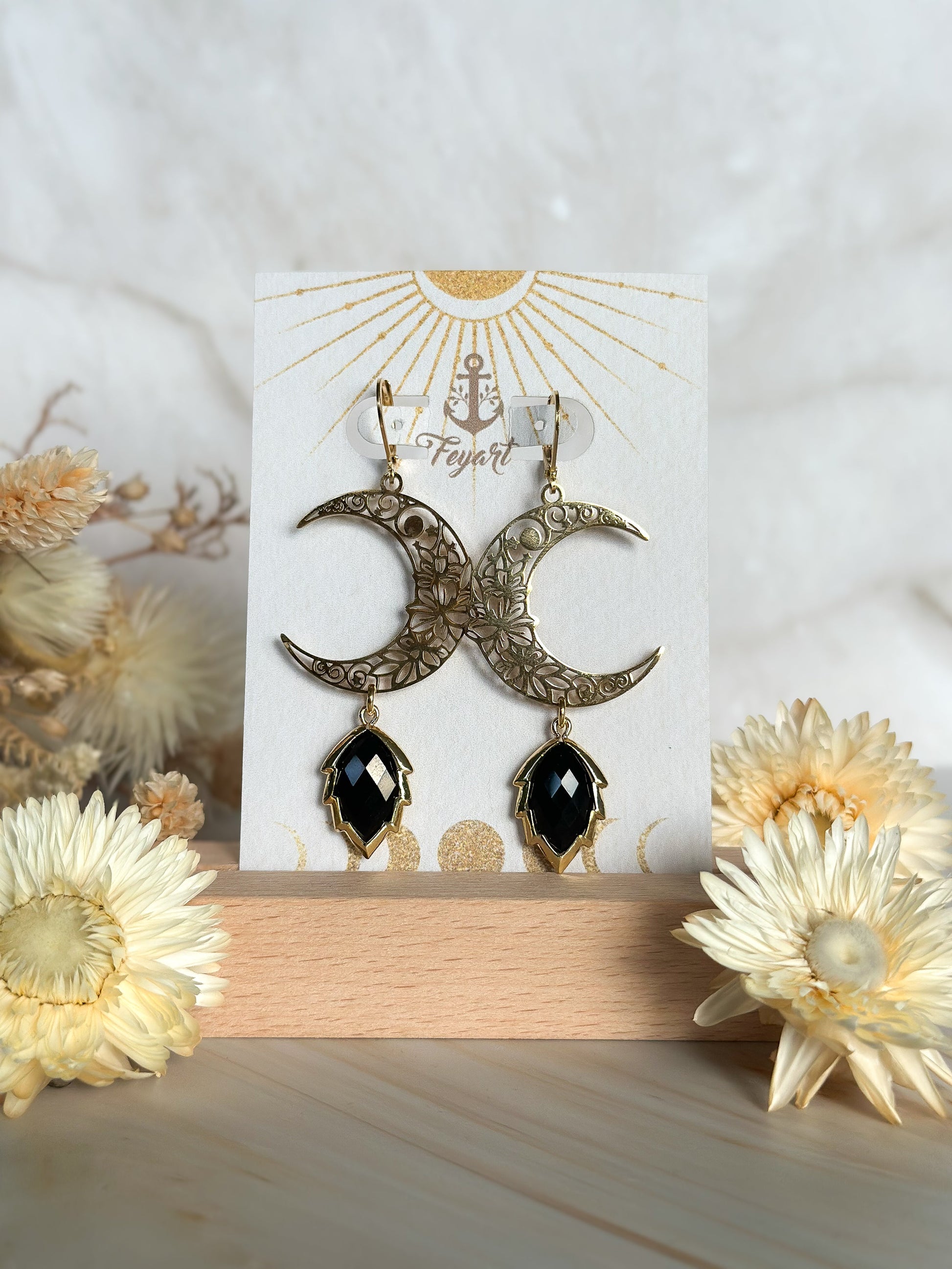 Diese zauberhaften Ohrringe vereinen filigrane Mondornamente mit der magischen Energie von Edelsteinen.